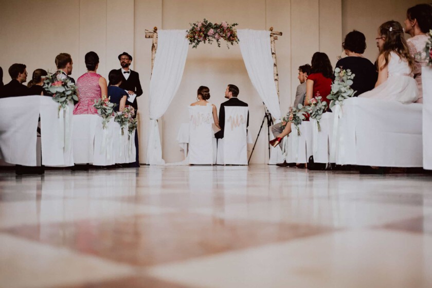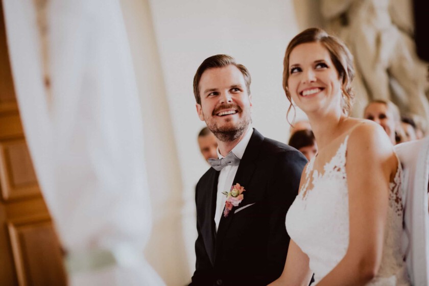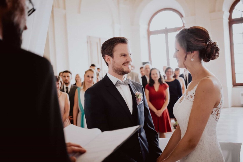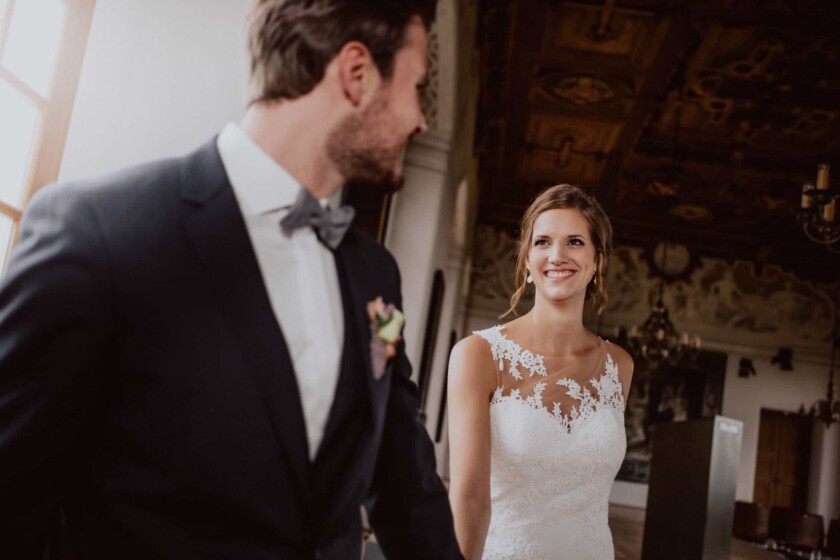 In einer perfekten Kulisse durfte ich als Hochzeitsfotograf Schloss Dachau den großen Tag von Tasja & Timo begleiten. Die Location liegt von mir aus ganz in der Nähe, also mehr oder weniger ein Heimspiel für mich als Fotograf. Schloss Dachau ist nicht nur ein historischer Ort, sondern auch ein beliebter Veranstaltungsort für Hochzeiten und bietet mit verschiedenen Räumlichkeiten eine sehr schöne Atmosphäre. Das Ja-Wort gaben sich die zwei während einer freien Trauung im ersten Stock vom Schloss. Ein wirklich spannender und emotionaler Moment, wenn die Braut langsam die Treppe hinaufgeht, wo der Bräutigam schon auf sie wartet. Gänsehaut inklusive.