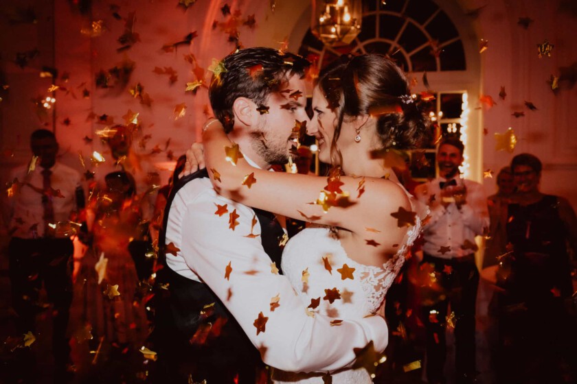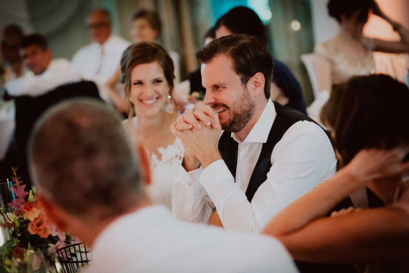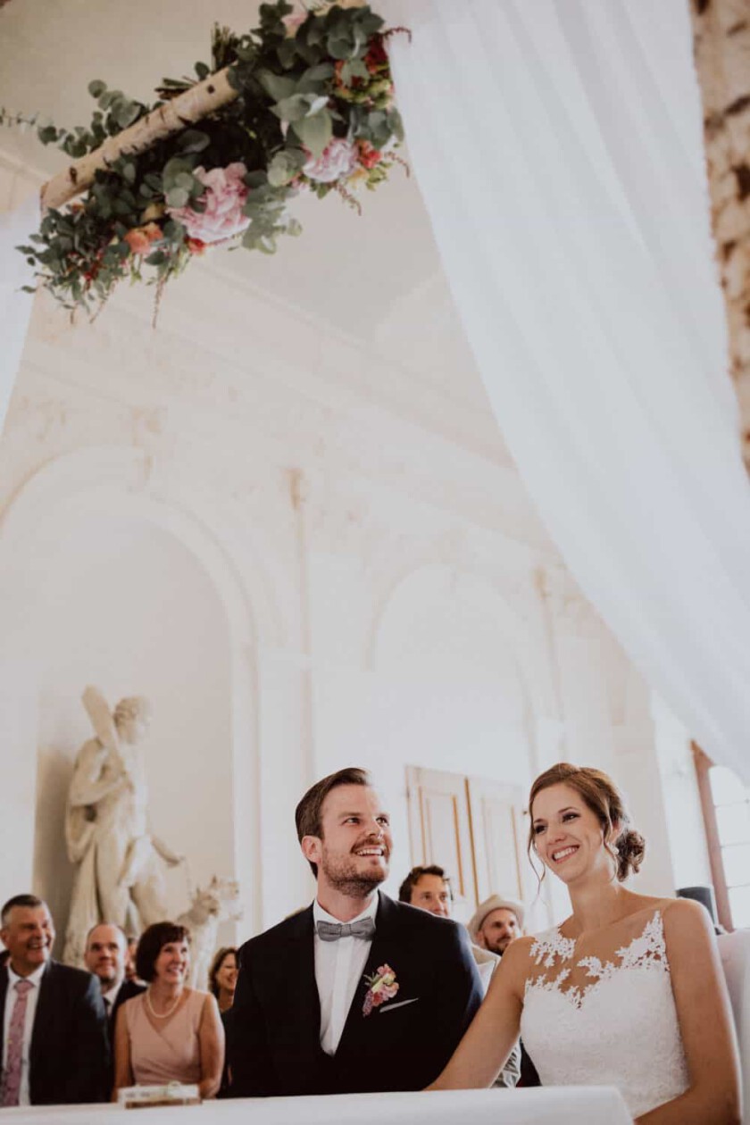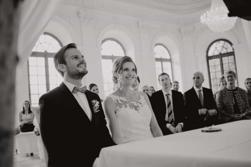 Nachdem es bis zu diesem Zeitpunkt eigentlich pausenlos durchgeregnet hatte, klarte es nach der Trauung am Nachmittag kurz für zehn Minuten auf und wir bekamen die Chance auch kurz im Schlossgarten ein paar Brautpaarfotos und schöne Hochzeitsfotos zu machen. Der Dauerregen tat der Hochzeit im Schloss Dachau jedoch absolut keinen Abbruch. Eine ausgelassene, emotionale Feier mit einem wunderbaren Brautpaar, sympathisch, herzlichen Hochzeitsgästen und einem genialen DJ. Schaut euch hier einen kleinen Ausschnitt der Hochzeitsbilder aus dieser Hochzeitsreportage an. Vielleicht könnt ihr euch auch die ein oder andere Inspiration für eure Hochzeit holen.